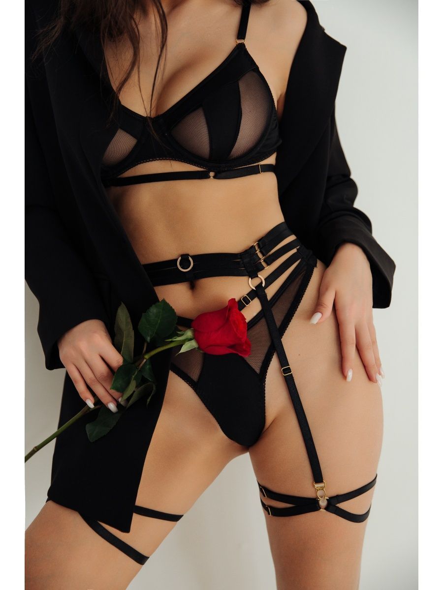 Want sexy sophistication? Bring a little elegance and glamor to your outfits with this black set rich in sensuality. Ideal for catching the eye during your most daring evenings, this sexy lingerie will be the new sexy touch to your wardrobe! Very comfortable thanks to its fine lace and large cups which blend superbly onto your chest!